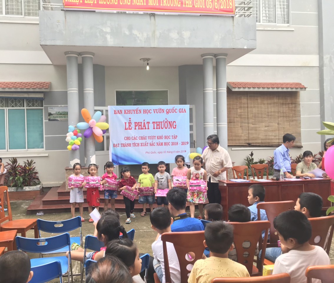 Lễ phát thưởng cho con của đoàn viên có thành tích xuất sắc trong năm học 2018-2019. Nguồn: CĐCS Vườn quốc gia Phú Quốc.