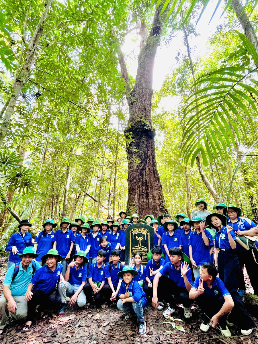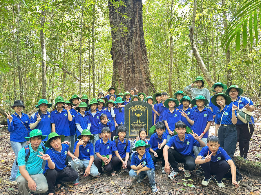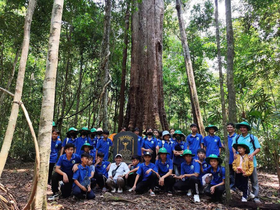 Các em chụp ảnh lưu niệm tại Cây Di Sản Vườn quốc gia Phú Quốc