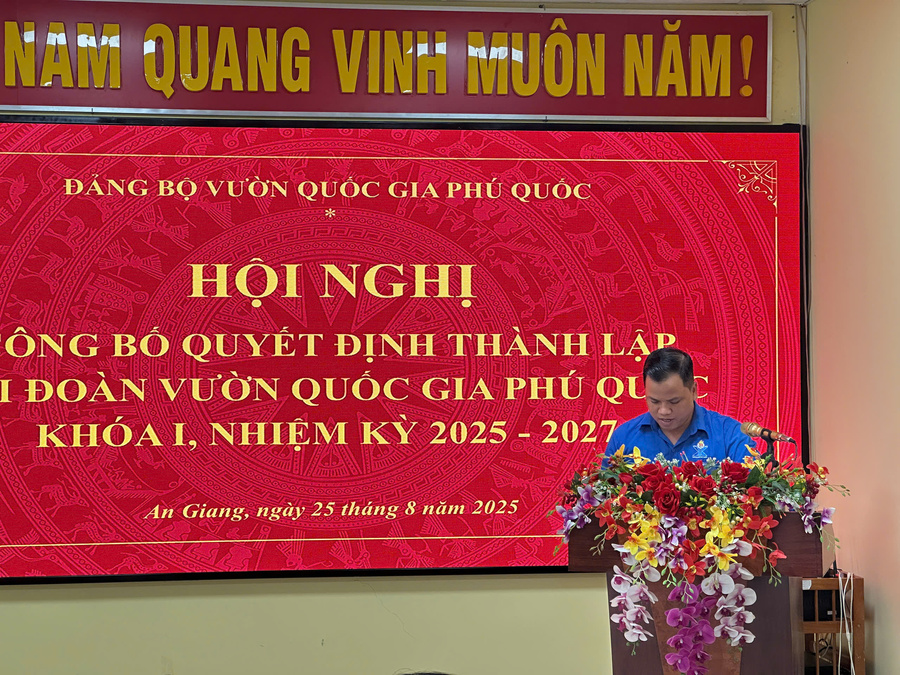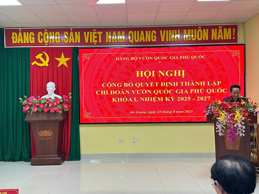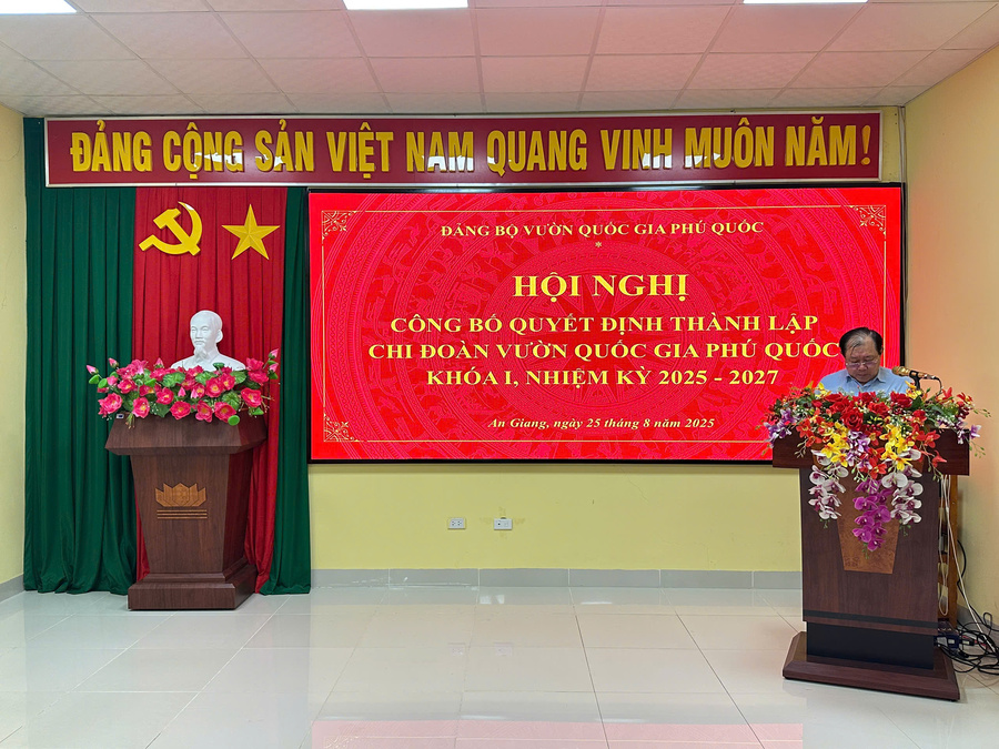 Chiều ngày 25/8/2025, Đảng uỷ Vườn quốc gia Phú Quốc tổ chức Hội nghị Công bố Quyết định thành lập Chi đoàn Vườn quốc gia Phú Quốc khoá I, nhiệm kỳ 2025-2027.