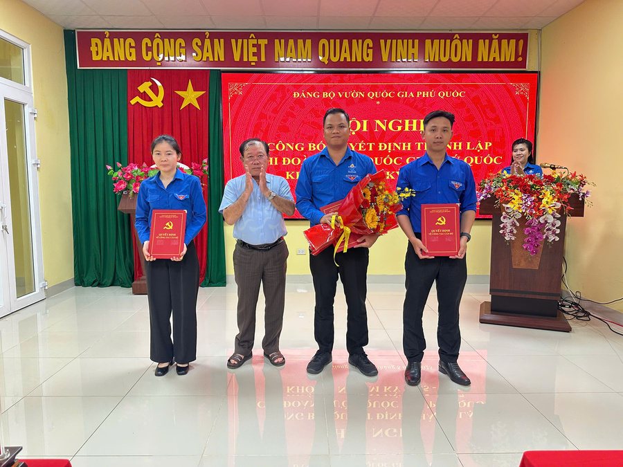Tại Hội nghị đồng chí Nguyễn Phú Nam thay mặt Đảng uỷ Vườn quốc gia Phú Quốc thông qua Quyết định số 60-QĐ/ĐTN ngày 19/8/2025 của BCH đoàn Đặc khu Phú Quốc về việc thành lập Chi đoàn Vườn quốc gia Phú Quốc khóa I, nhiệm kỳ 2025-2027 và Quyết định số 61-QĐ/ĐTN ngày 19/8/2025 của BCH đoàn Đặc khu Phú Quốc về việc chỉ định Ban chấp hành, Bí thư, Phó Bí thư Chi đoàn Vườn quốc gia Phú Quốc khóa I, nhiệm kỳ 2025-2027. Theo đó Chi đoàn Vườn quốc gia Phú Quốc khoá I, nhiệm kỳ 2025-2027 gồm 16 đoàn viên, chỉ định Ban Chấp hành chi đoàn gồm 3 đồng chí: Đồng chí Nguyễn Minh Tiến – UV.BCH Đảng uỷ, viên chức Phòng Tổ chức và Kế hoạch tài chính làm Bí thư Chi đoàn; đồng chí Nguyễn Thị Diệu Quỳnh – viên chức Trung tâm Du lịch sinh thái và cứu hộ sinh vât làm Phó Bí thư Chi đoàn; đồng chí Nguyễn Gia Long – Phó Đội trưởng Đội Cơ động Phòng Quản lý Bảo vệ và Phát triển rừng làm UV. BCH.