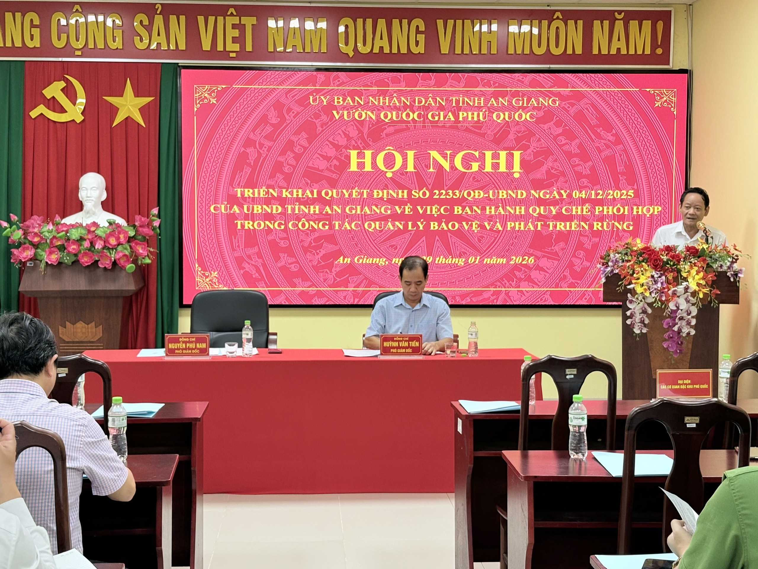 Thực hiện Quyết định số 2233/QĐ-UBND ngày 04/12/2025 của Ủy ban nhân dân tỉnh An Giang về việc ban hành Quy chế phối hợp giữa Vườn Quốc gia Phú Quốc với các sở, ngành, các đơn vị lực lượng vũ trang, các cơ quan tư pháp và chính quyền địa phương trong công tác quản lý, bảo vệ và phát triển rừng.