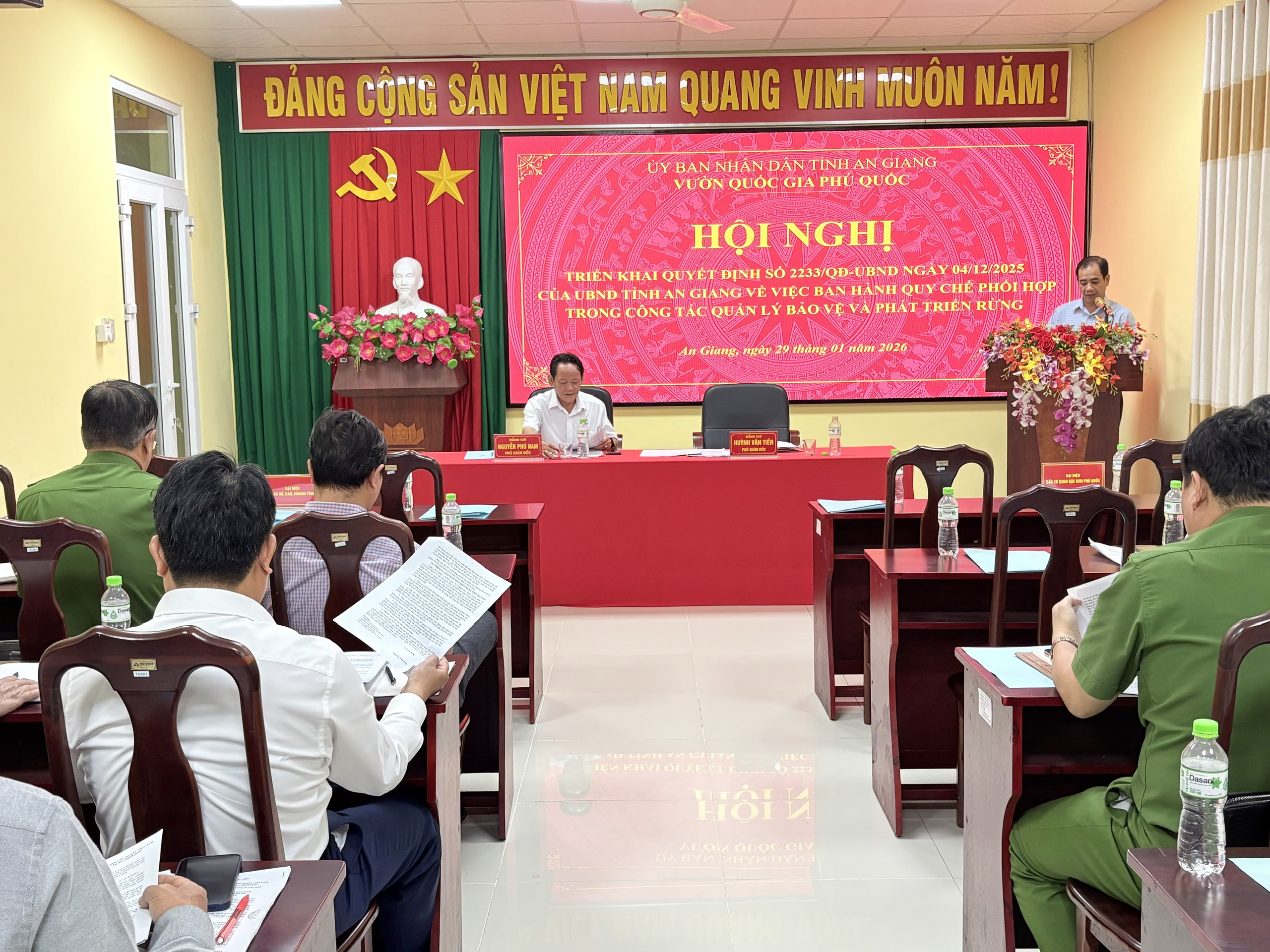 Ngày 29/01/2026, Vườn Quốc gia Phú Quốc đã tổ chức Hội nghị để triển khai thực hiện Quy chế phối hợp giữa các cơ quan, đơn vị trong công tác quản lý, bảo vệ rừng và phòng cháy, chữa cháy rừng. Hội nghị là sự kiện quan trọng, trong việc tăng cường phối hợp liên ngành, hướng tới quản lý bền vững tài nguyên rừng và bảo tồn đa dạng sinh học Vườn Quốc gia Phú Quốc.