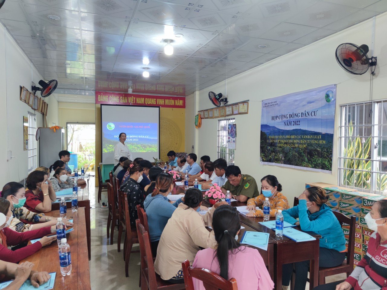Trung tâm du lịch và cứu hộ sinh vật, Vườn quốc gia Phú Quốc phối hợp với UBND 06 xã tổ chức tuyên truyền các văn bản pháp luật liên quan đến lĩnh vực lâm nghiệp và giới thiệu tài nguyên rừng, tài nguyên biển Vườn quốc gia Phú Quốc cho cộng đồng dân cư 27 ấp từ ngày 08/8/2022 đến ngày 25/8/2022 với 810 lượt người dân tham gia.